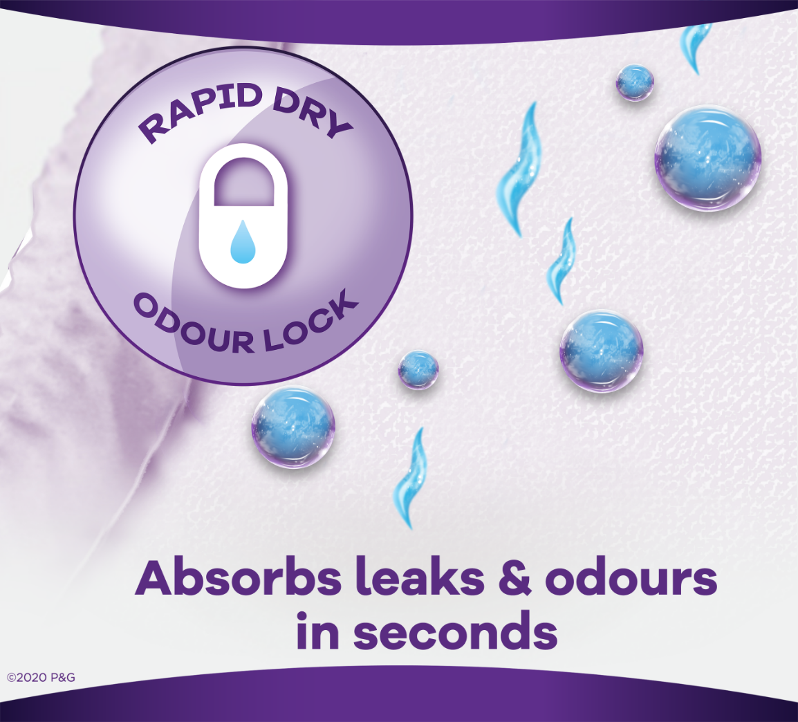 - Made differently – Super-absorbent Rapid Dry core that turns liquid to gel and locks it away. Giving you up to 100% protection & discretion