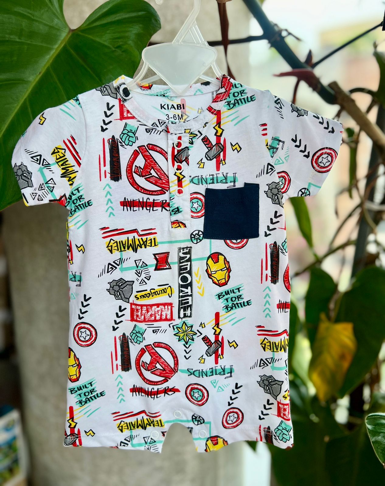 Baby Front Button Half Sleeve Summer Romper- white ironman