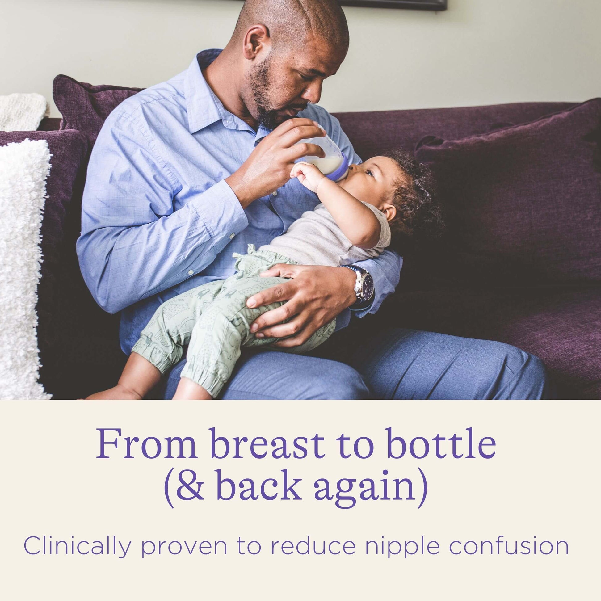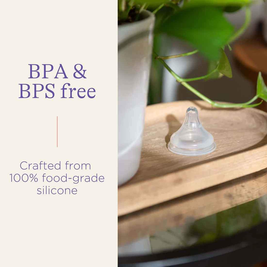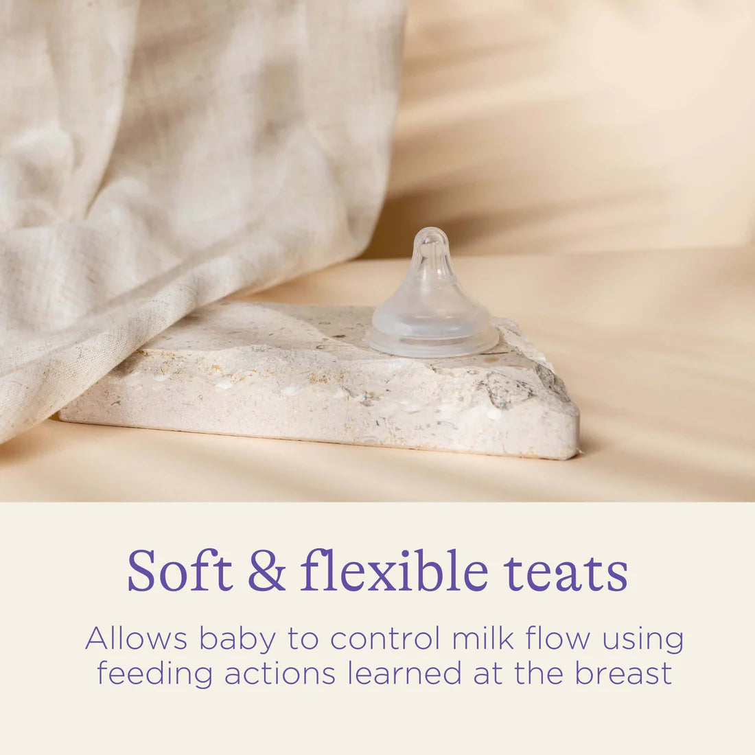 The unique Natural Wave® design enables a wider latch-on, similar to a baby’s natural latch and with a super soft and flexible design, the silicone teat allows baby to control the milk flow so baby can enjoy a comfortable feed.